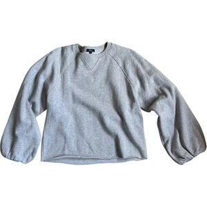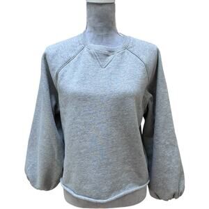 Keywords: Rails gray sweatshirt, crewneck pullover, 100% cotton fleece sweatshirt, Rails small sweatshirt, balloon sleeve sweater, raglan sleeve pullover, neutral minimalist loungewear, minimalist, cozy, athleisure