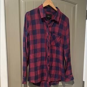 Rails Hunter Flannel Plaid Shirt, size Small. Deep berry pink and dark blue. Button-up. Relaxed with a classic fit, soft rayon. EUC.