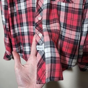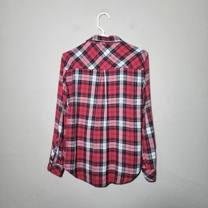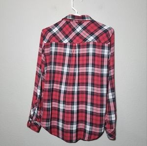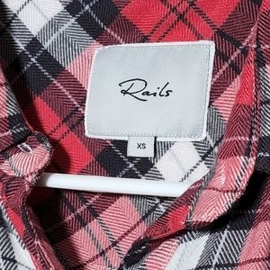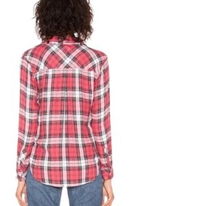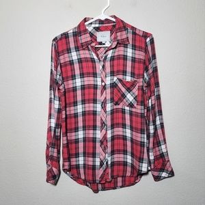 RAILS Hunter Plaid Button front shirt in scarlet ash & white Model Off-Duty XS