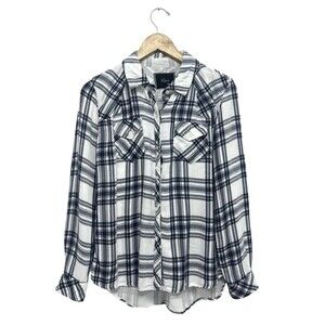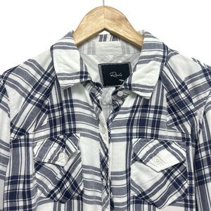 RAILS Hunter White Indigo Blue Plaid Flannel Button Down Shirt Collar Long Sleeve Women's Size S