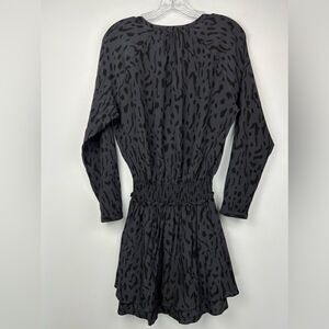RAILS Jasmine Dress Ash Cheetah Mini Long Sleeve Button Details Tiered Skirt S