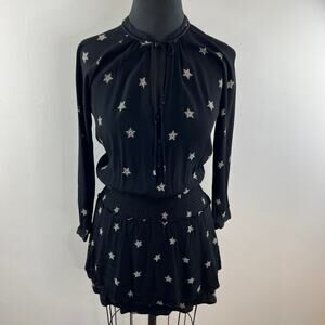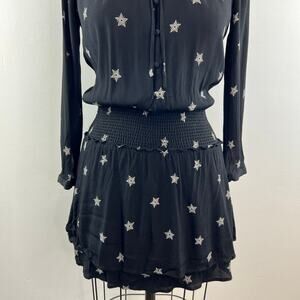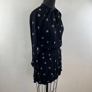 RAILS Jasmine Dress Black Rivet Star Print Smocked Waist Tie Neck Long Sleeve XS