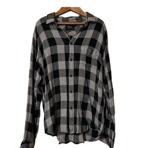 RAILS Lennox Brushed Black Charcoal Gray Buffalo Plaid Flannel Button Shirt XXL