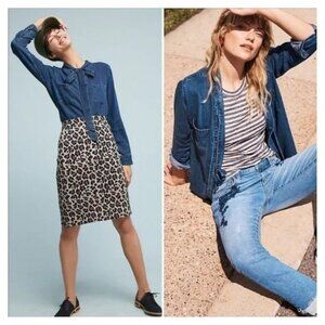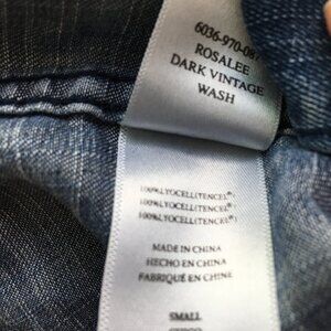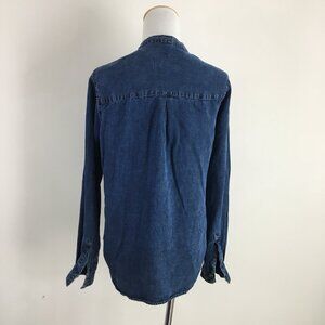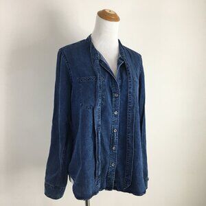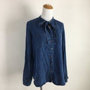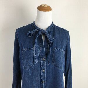 RAILS Long Sleeve Dark Vintage Wash ROSALEE Tie Collar Chambray Denim Shirt