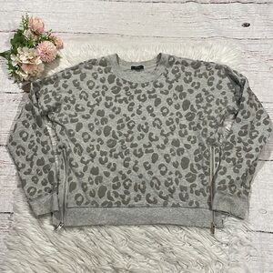 Rails Marlo flocked heather gray colored leopard patterned pullover side zipper sweatshirt. This sweatshirt is in great used condition