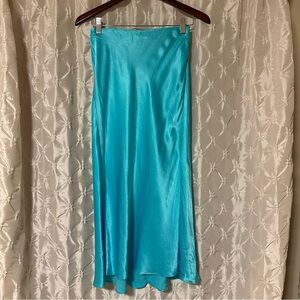 RAILS Maya Satin Midi Skirt Azure Aqua Blue Pull On Slip Slit