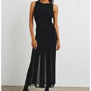 RAILS NEW Alessia A-Line Maxi Dress Black Mesh Pleated Heavy Knit Women's M