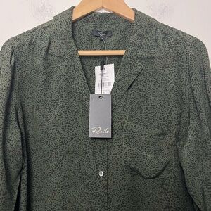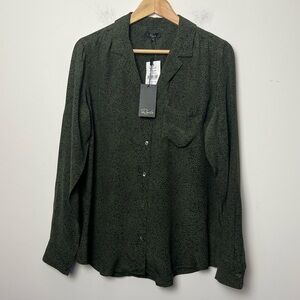 RAILS Rebel Olive Speckled Button Up Blouse Silky Lightweight Contemporary NEW