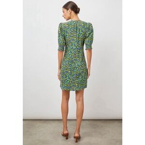 RAILS Roma Dress Womens Small Abstract Garden Print Green Blue Short Sleeve