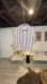 Striped linen (70% Rayon, 30% Linen). Top. Short sleeves. Shirt collar neckline. Exposed front button down closure. 22" from shoulder to hemline. Imported.
