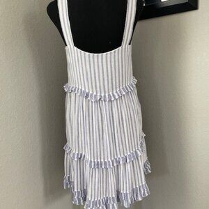 RAILS Sandy Blue White Striped Tiered Linen Mini Sundress Small