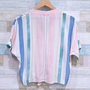 RAILS Thea Striped Tie Front Top Blue Pink Pastel Dolman Half Sleeve Womens XS