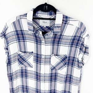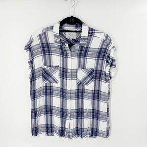 ✅ RAILS Top Size MEDIUM Blue Plaid Britt Blue and White Plaid Button-Up Shirt