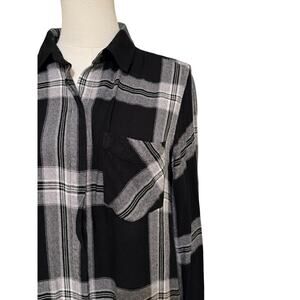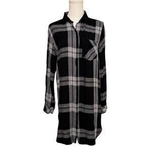 Rails Sawyer Shirt Dress in Black Cinder Plaid Small Long Sleeve Rayon