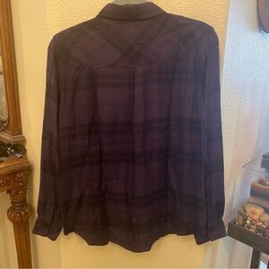 Pre-owned in great condition with no rips or stains. Women’s purple and black plaid buttoned long sleeve shirt. Hand wash only. Comes from smoke and pet free home.