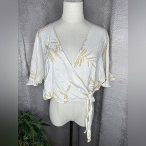 RAILS Women’s Athena Savannah Palms Print Wrap Top Linen in Cream Sz M