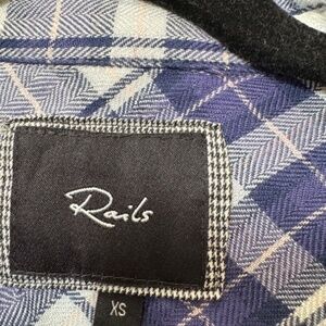 Rails Women’s Size XS Blue, White and Pink Pin Stripe Plaid Long Sleeve Button Up Shirt.