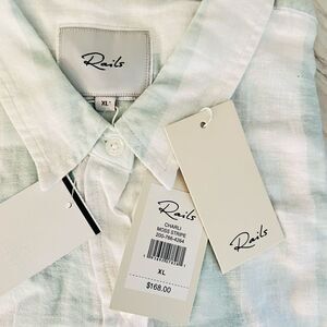 RAILS Women's Charli Awning Stripe Linen Blend Blouse, XL (14), White/Blue, NWT