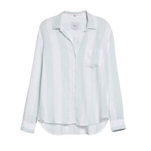 RAILS Women's Charli Awning Stripe Linen Blend Blouse, XL (14), White/Blue, NWT