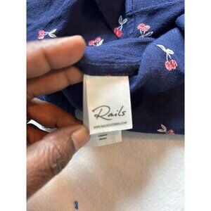 RAILS Womens Cherry Print Button-Down Blouse Size L Navy & Red