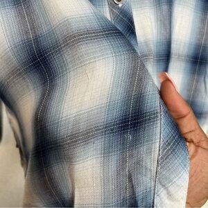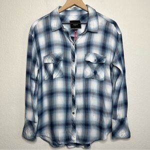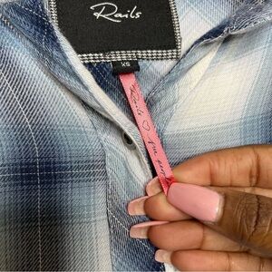 RAILS x FREE PEOPLE Women Button Down Shirt Blue White Draped Plaid Flannel XS
