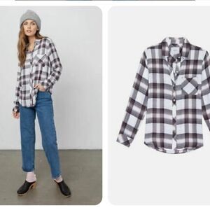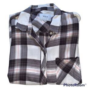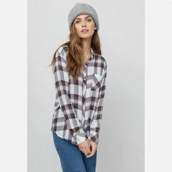 RAILS Hunter plaid Shirt White Grey Peach button down long sleeve top