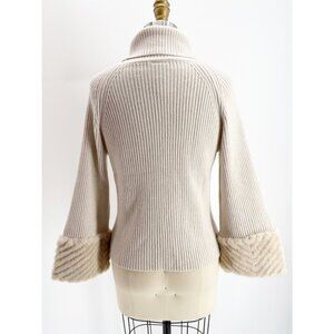 RAIN AND ROSE Beige Neutral Faux Fur Cuff Turtleneck Sweater