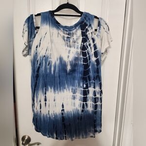 RAIN Blue Tye-die cold shoulder w/ Metal Studs top