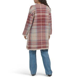 Brand New Color: Brick Multi plaid pattern, fuzzy finish long sleeve open front 32in length from shoulder to hem lightweight knit polyester imported hand wash