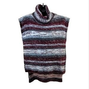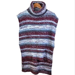 RAIN + ROSE sleeveless long back turtleneck sweater/tunic, acrylic, longer in the back than front, 22" pit to pit, 25" shoulder to hem front, 33" shoulder to hem back, previously owned, excellent condition
