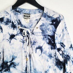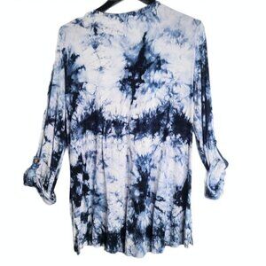 RAIN Rayon Blue Tie Dye Roll Tab Sleeve Top