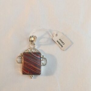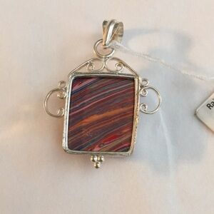 Rainbow Calsilica Sterling Silver Pendant. Approximately 1.5 inches. NonSmoking home