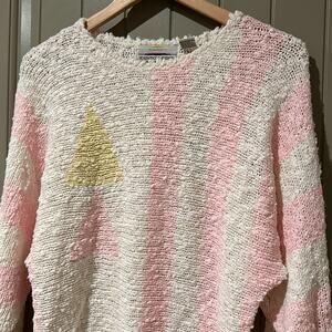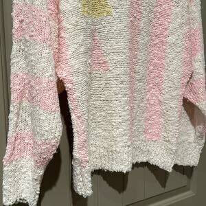 Rainbow Ridge helium knitted sweater, in pastel shades of yellow and pink. Preowned, good condition. Vintage, hard to find. Soft knit, cozy.