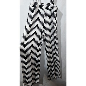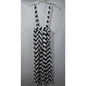 RAINBOW SHOP Size M Gray Blk Summer Casual Zig Zag Print Pants w/Shoulder Straps
