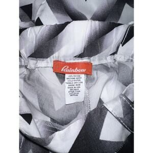 The Rainbow Shop Size M Gray Black Summer Casual Zig Zag Print Pants with Shoulder Straps are a stylish and comfortable addition to any woman's wardrobe. Made from lightweight rayon material, these pants feature a trendy geometric pattern in shades of gray, white, and black. The pull-on closure and elastic waist make them easy to wear and perfect for casual occasions in the summer season. With a flared leg style and a high-rise fit, these pants offer a fun and hippie-inspired look that is both fashionable and on-trend. Perfect for pairing with a variety of tops and shoes, these pants are sure to become a go-to staple in your closet.