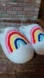Soft and cozy with squishy padded footbed and rubber tread soles. Adorable punch embroidery rainbows.