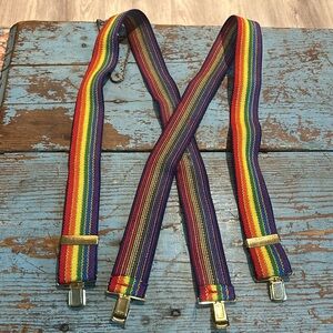 RAINBOW SUSPENDERS - Vtg 70s-80s Clown Mork & Mindy Elastic w Metal Clips