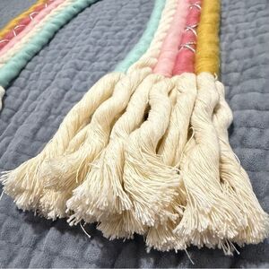 🧵 Handmade-style design with braided cotton ropes and colorful yarn wrapping.