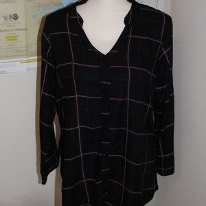 "RAINDROPS" BLACK PLAID BLOUSE SZ XXL