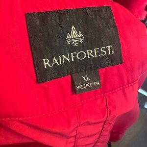 Bold red raincoat by RAINFOREST. Perfect for rainy days. Stylish and functional.