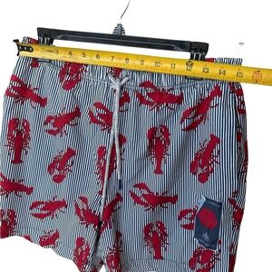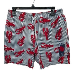 RAINFOREST Red and White Swim Trunks with Nautical Lobster Print