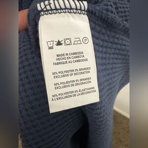 Navy hoodie with a textured pattern. Features a drawstring hood and front pocket. Ideal for casual wear.