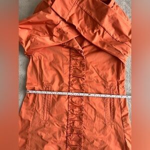 RAINFOREST packable travel coat orange w/Ruffle placket trench size small
