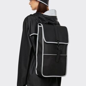 In this version, the design arrives accented with reflective bindings. Backpack Reflective is cut from Rains’ signature waterproof PU fabric, engineered for strength and durability with a smooth feel.