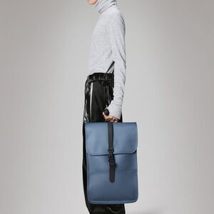 Backpack is cut from Rains' signature PU fabric, engineered for carrying strength, durability and a smooth feel.