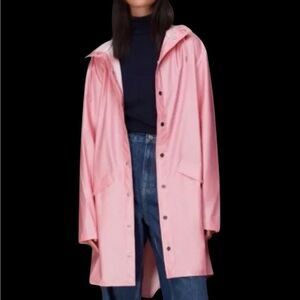 RAINS LONG JACKET IN SKY PINK, sz Medium