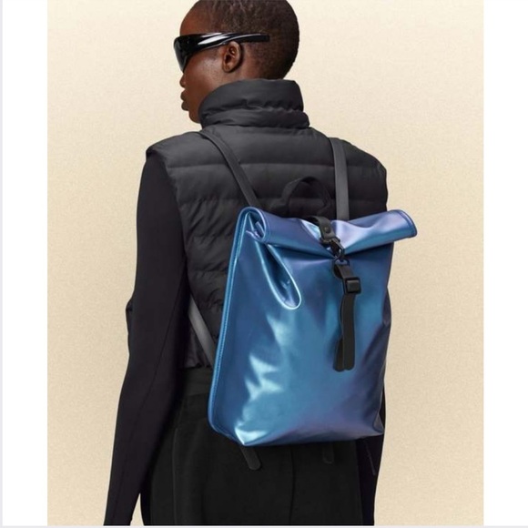 Rolltop Rucksack is cut from Rains' signature PU fabric engineered for carrying strength, durability and a smooth feel.