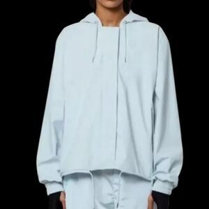 This Rains String W Jacket in size Large features a stylish raincoat design in the color Sky.
