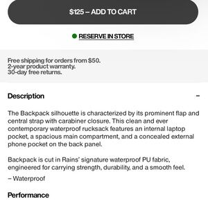 Brand new with tags RAINS backpack