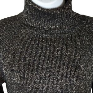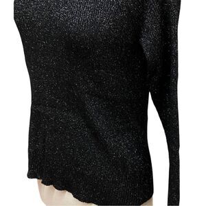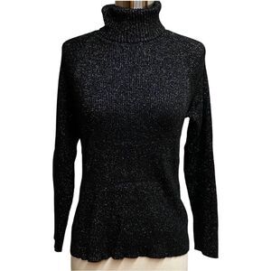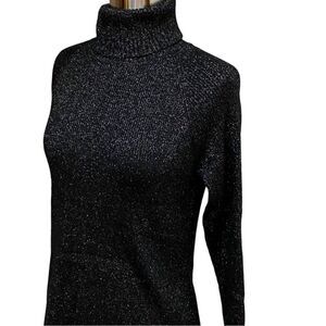 Black & metallic turtleneck top made from rayon, nylon, and polyester. Perfect for holiday party or dressing up a pair of jeans. Measurements in pics